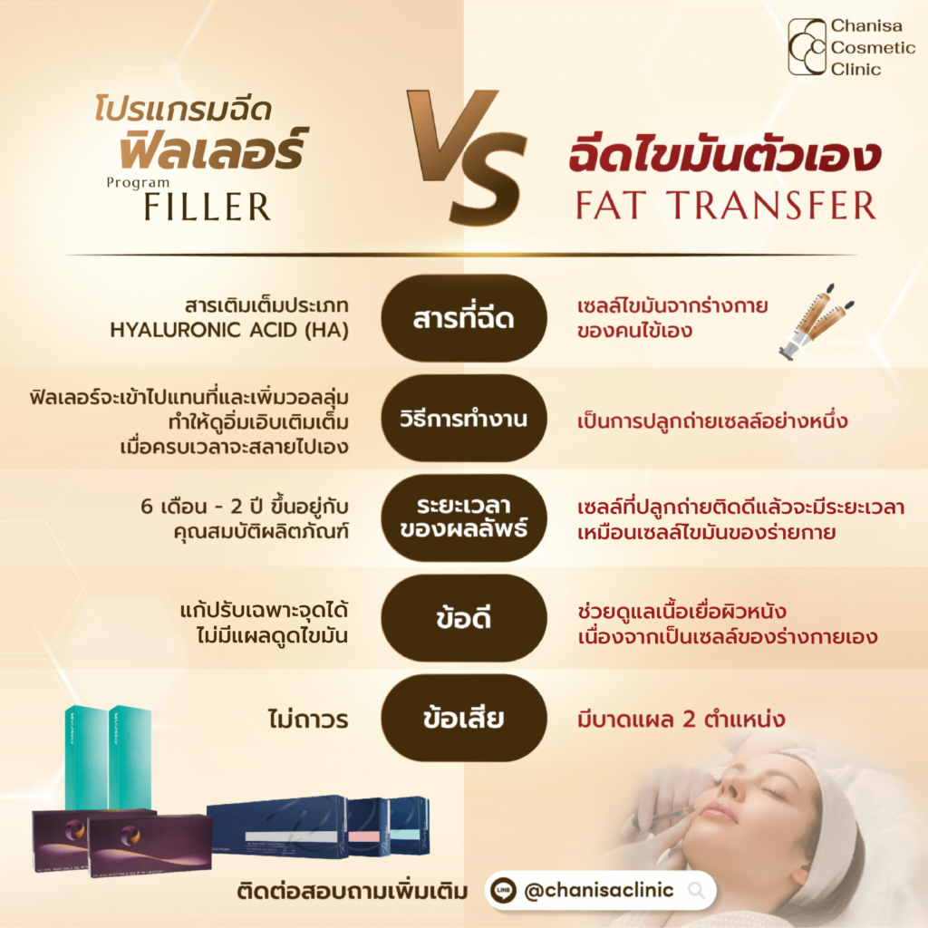 โปรแกรมฉีดฟิลเลอร์ vs ฉีดไขมัน