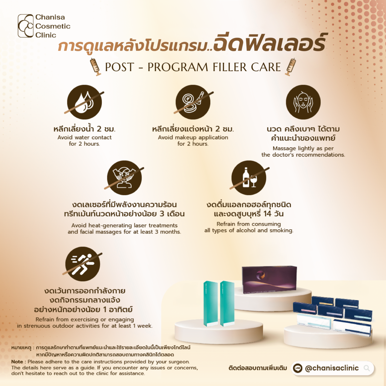 หมายเหตุ: การดูแลรักษาทำตามที่แพทย์แนะนำและใช้รายละเอียดในนี้เป็นเพียงไกด์ไลน์ หากมีปัญหาหรือความผิดปกติสามารถสอบถามทางคลินิกได้ตลอด Note: Please adhere to the care instructions provided by your surgeon. The details here serve as a guide. If you encounter any issues or concerns, don’t hesitate to reach out to the clinic for assistance.