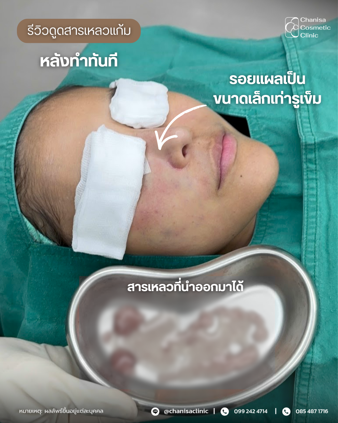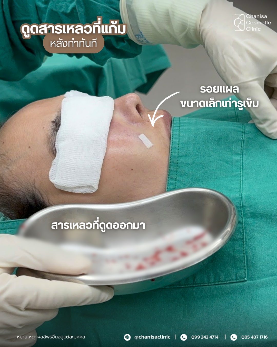 3.ดูดซิลิโคนเหลวที่ใกล้อักเสบบริเวณแก้ม