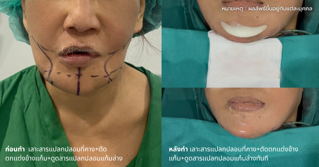 1. การผ่าตัดเอาสารแปลกปลอมออกพร้อมตกแต่งคาง