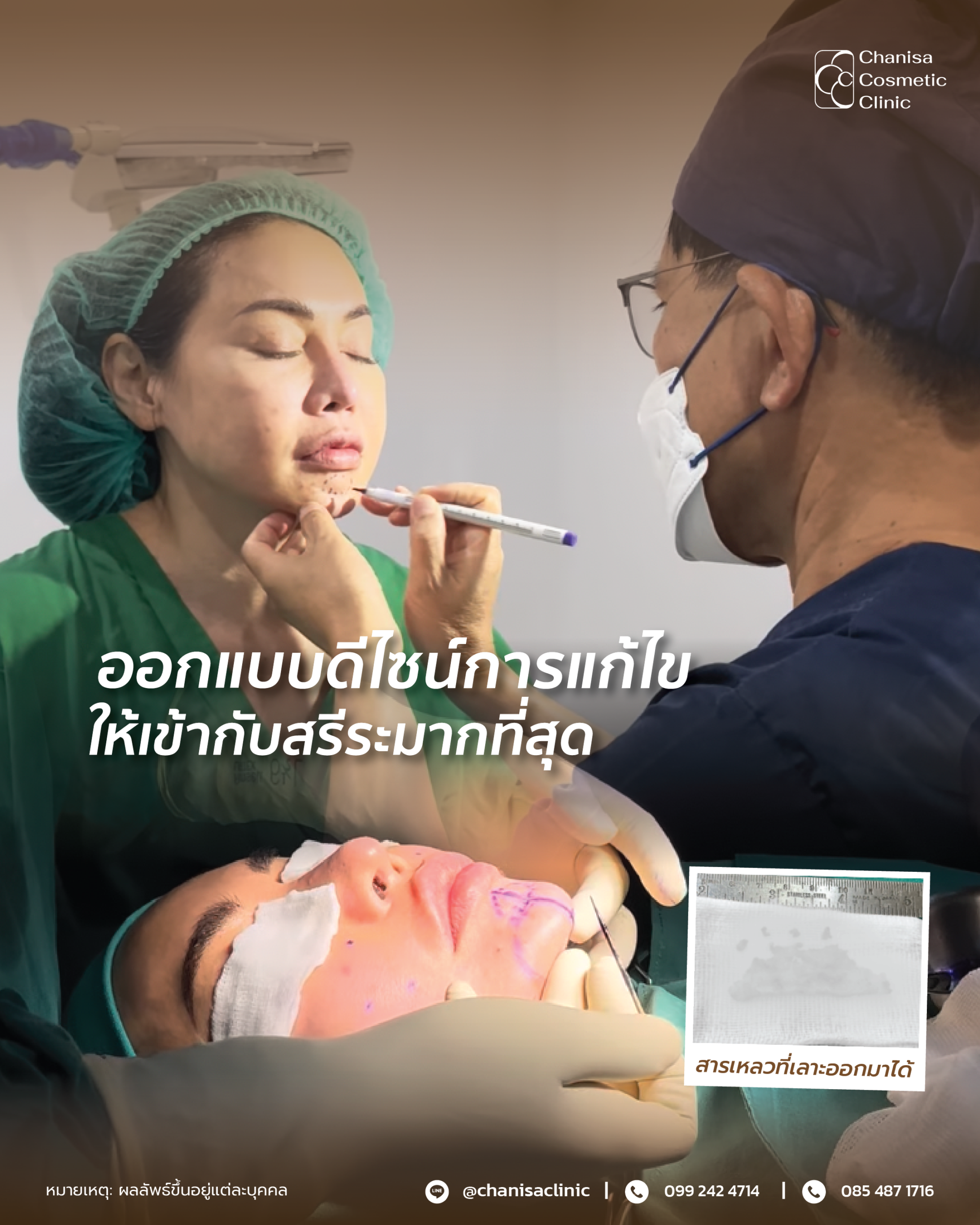 การแก้ไขสารเหลวด้วยการเลาะ  ของคลินิกสามารถนำสารเหลวออกได้อย่างมีประสิทธิภาพ แม่นยำ และใส่ใจความปลอดภัย อีกทั้งยังเน้นการซ่อนแผล เพื่อให้รอยแผลเนียนและกลมกลืนกับสรีระ โดยการเย็บแผลที่ประณีตช่วยให้แผลเรียบเนียนและดูเป็นธรรมชาติ