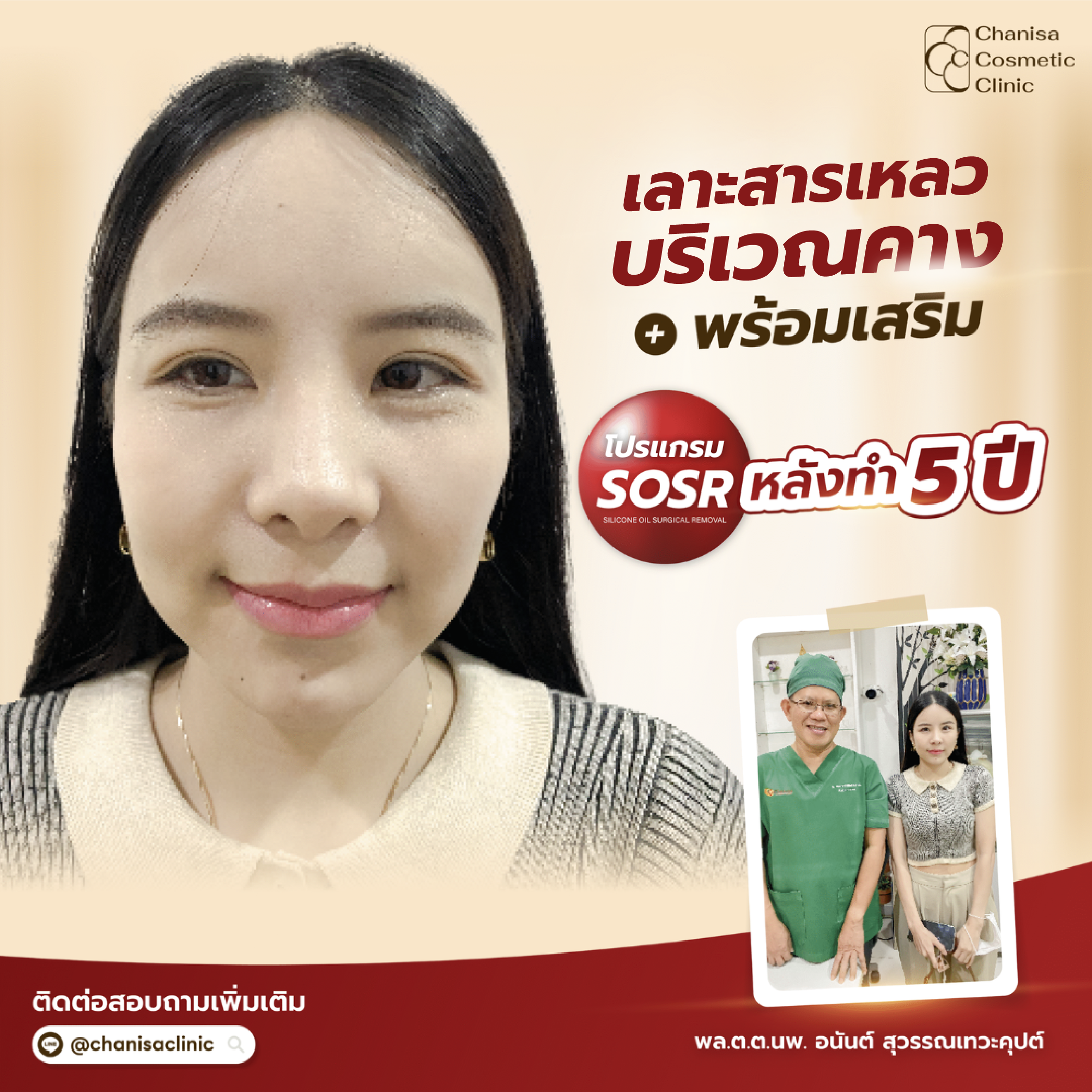 เละสารเหลวคางพร้อมเสริมซิลิโคน + เลาะสารเหลวจมูกพร้อมเสริม