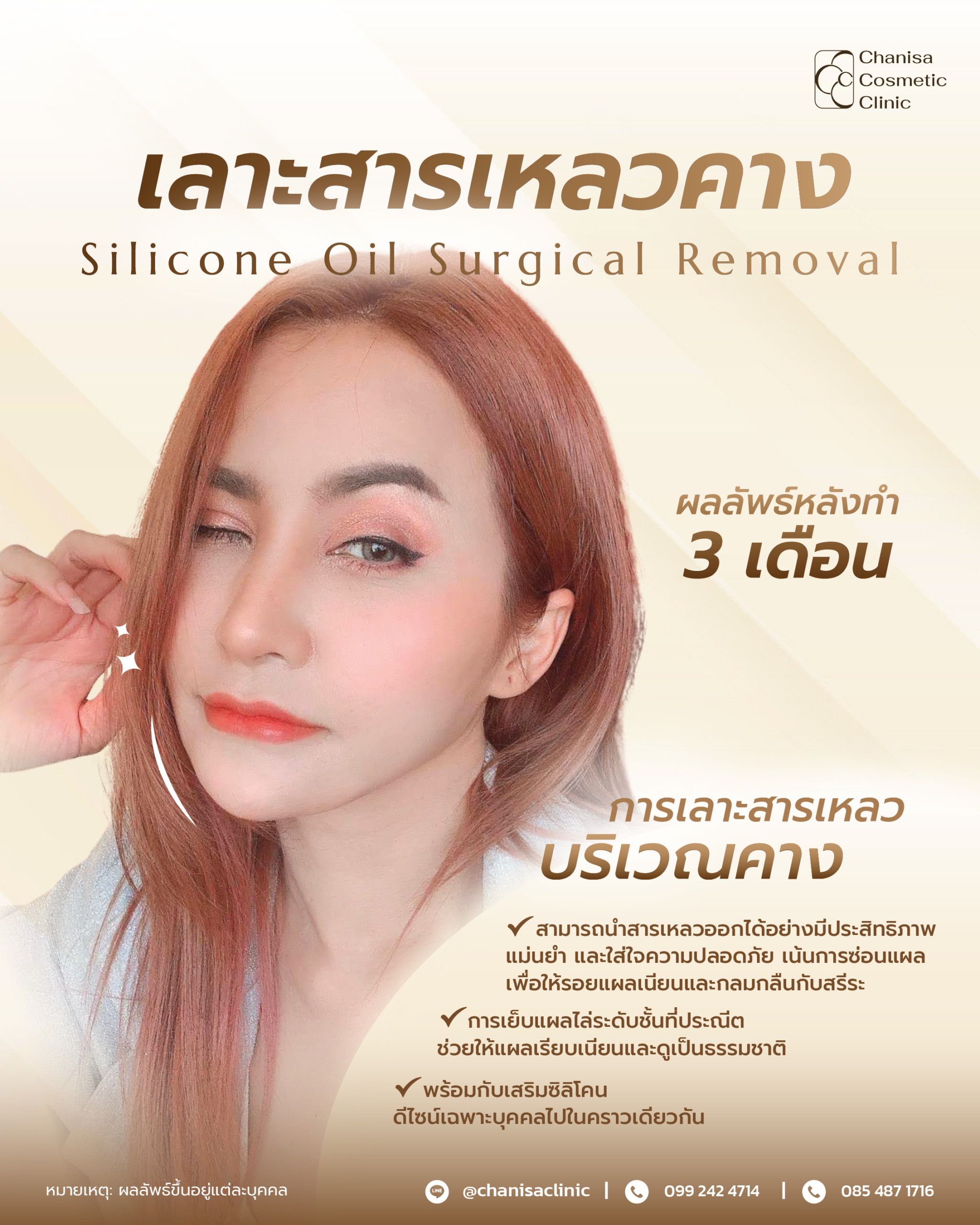 การแก้ไขสารเหลวด้วยการเลาะ ของคลินิกสามารถนำสารเหลวออกได้อย่างมีประสิทธิภาพ แม่นยำ และใส่ใจความปลอดภัย อีกทั้งยังเน้นการซ่อนแผล เพื่อให้รอยแผลเนียนและกลมกลืนกับสรีระ โดยการเย็บแผลที่ประณีตช่วยให้แผลเรียบเนียนและดูเป็นธรรมชาติ