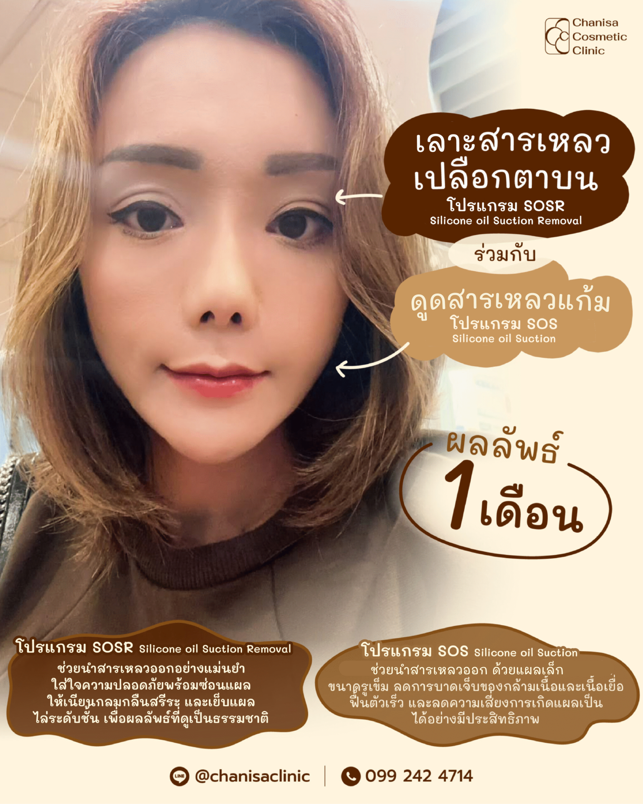 แก้ไขสารเหลวเปลือกตาบน การเอาสารเหลวออกด้วยวิธี Silicone Oil Surgical Removal (SOSR) ของทางคลินิก ช่วยให้การนำสารเหลวออกจากเปลือกตาเป็นไปอย่างมีประสิทธิภาพและใส่ใจความปลอดภัย พร้อมมอบผลลัพธ์ที่น่าประทับใจ ด้วยกระบวนการดังนี้:
